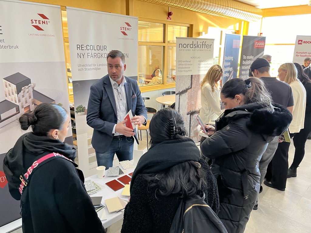 Studenternas hade i uppgift att samla information om olika byggmaterial till ett kursprojekt om en ombyggnation av ett hus till en skola. Samtidigt fick de chansen att mingla med företag och bredda sina kontaktnät. Studenten Ebba Stillman tyckte det var jättekul att få en inblick i vilka företag och yrken som finns i byggbranschen.