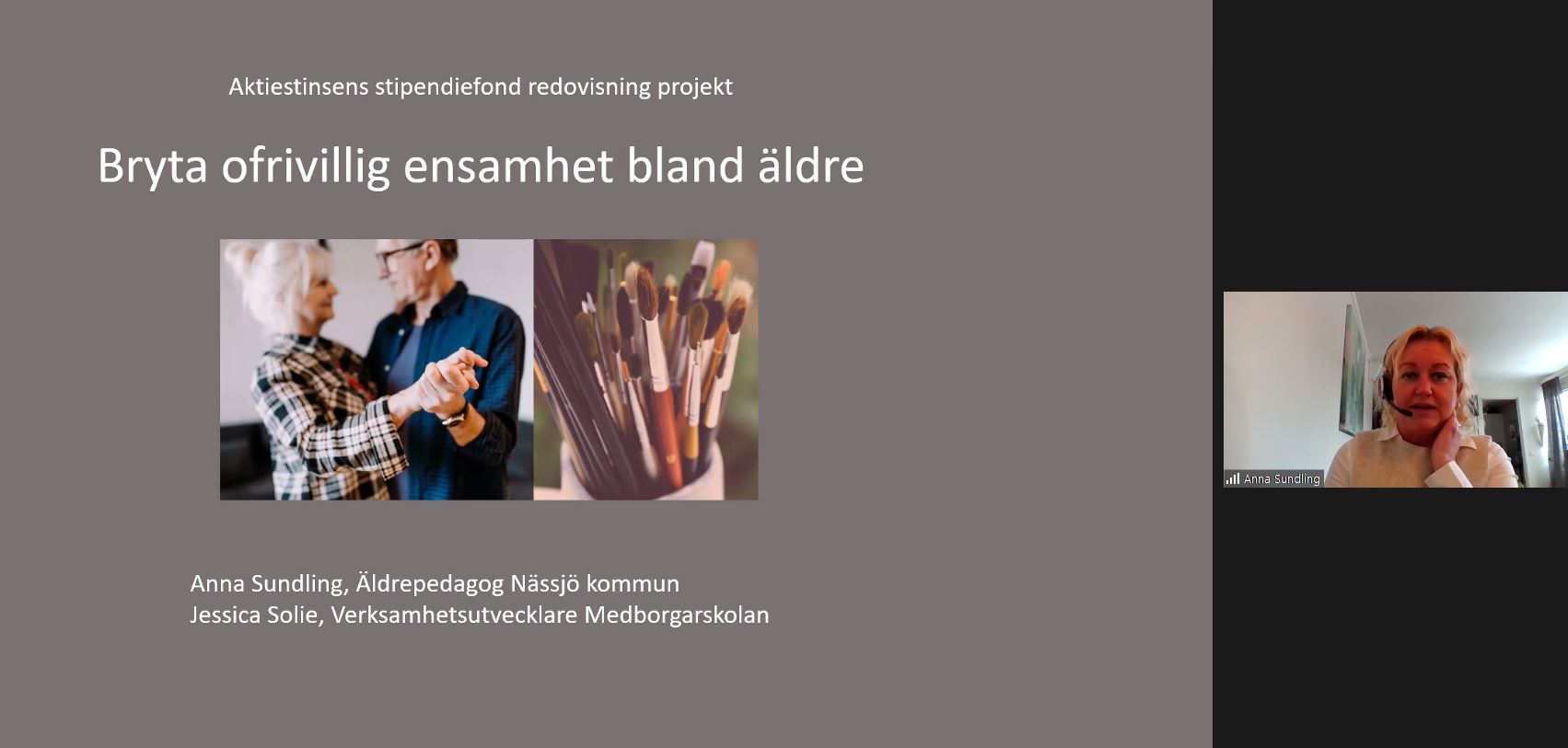 The ceremony, which usually begins with a joint lunch and then presentations from both this year's and last year's scholarship recipients, was, this time, held as a digital event. The Dean at the School of Health and Welfare, Marie Ernsth Bravell, who is also chairman of the foundation, began the afternoon with a brief overview of the scholarship process and announced that the project "Elderly in safety" would be awarded SEK 150,000.