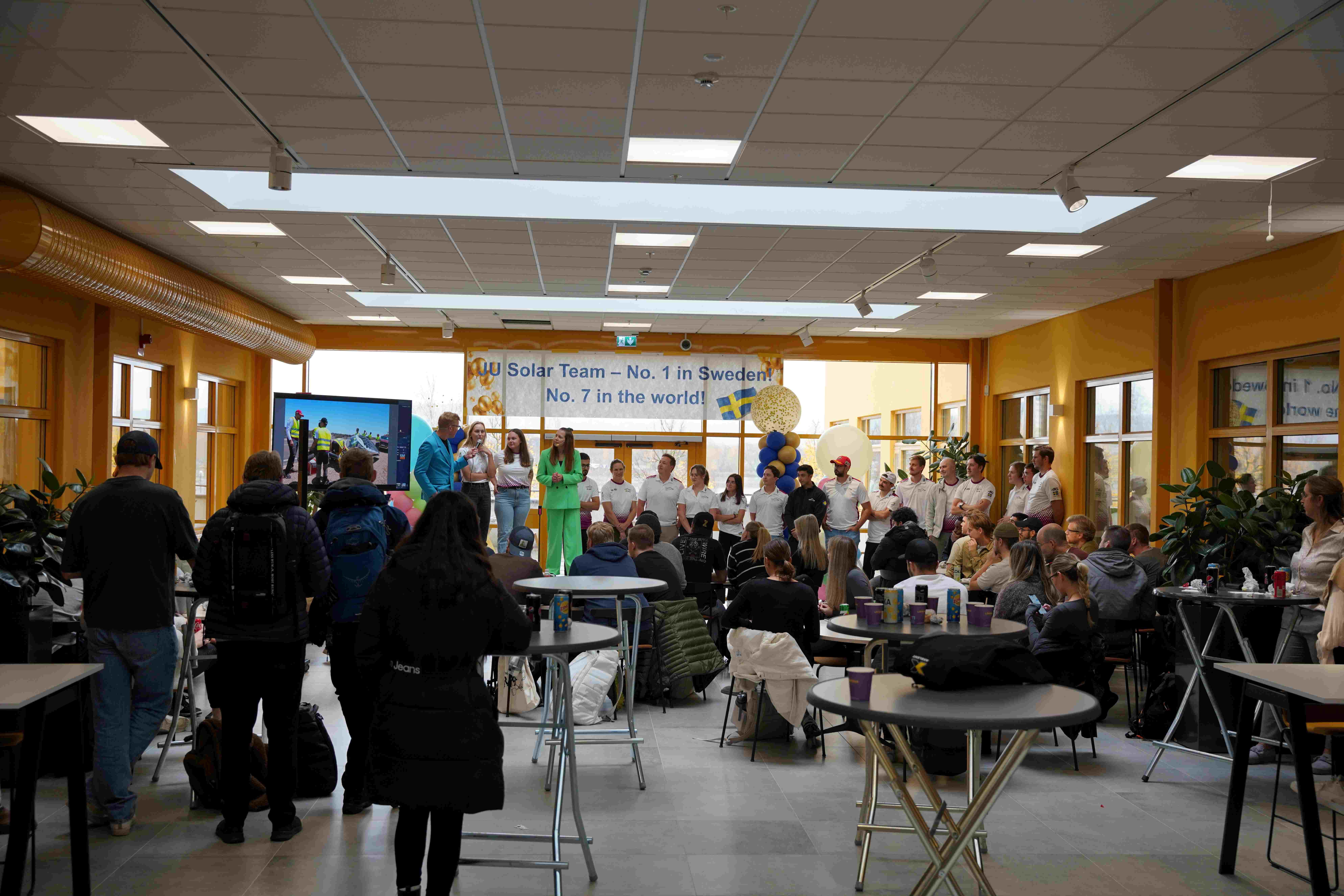 JU Solar Team blev bästa svenska solbil och slutade sjua totalt i tävlingen där man korsar den australiska kontinenten. Laget emot med varma applåder, hurrarop och gratulationer från de drygt 100 åhörarna i galleriet på JTH. Flera deltagare blev intervjuade och berättade om tävlingen och de många utmaningarna de ställdes inför. Konferencierer var Jonas Gallneby och Alexandra Pettersson från FSK Group.