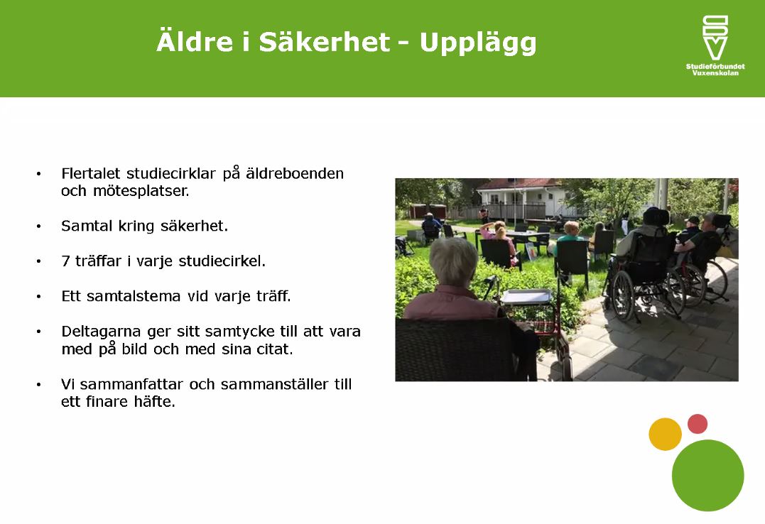 “Despite the impact of the corona pandemic, we are hopeful and optimistic and believe that we will be able to implement the project in 2021. Through seven study circles, we will discuss positive and negative aspects of how safety has changed, based on various themes such as banking, nature and environment and traffic. We also hope that it will be a nice and pleasant moment together,” said Madeleine Svärd who is the main applicant for the project.