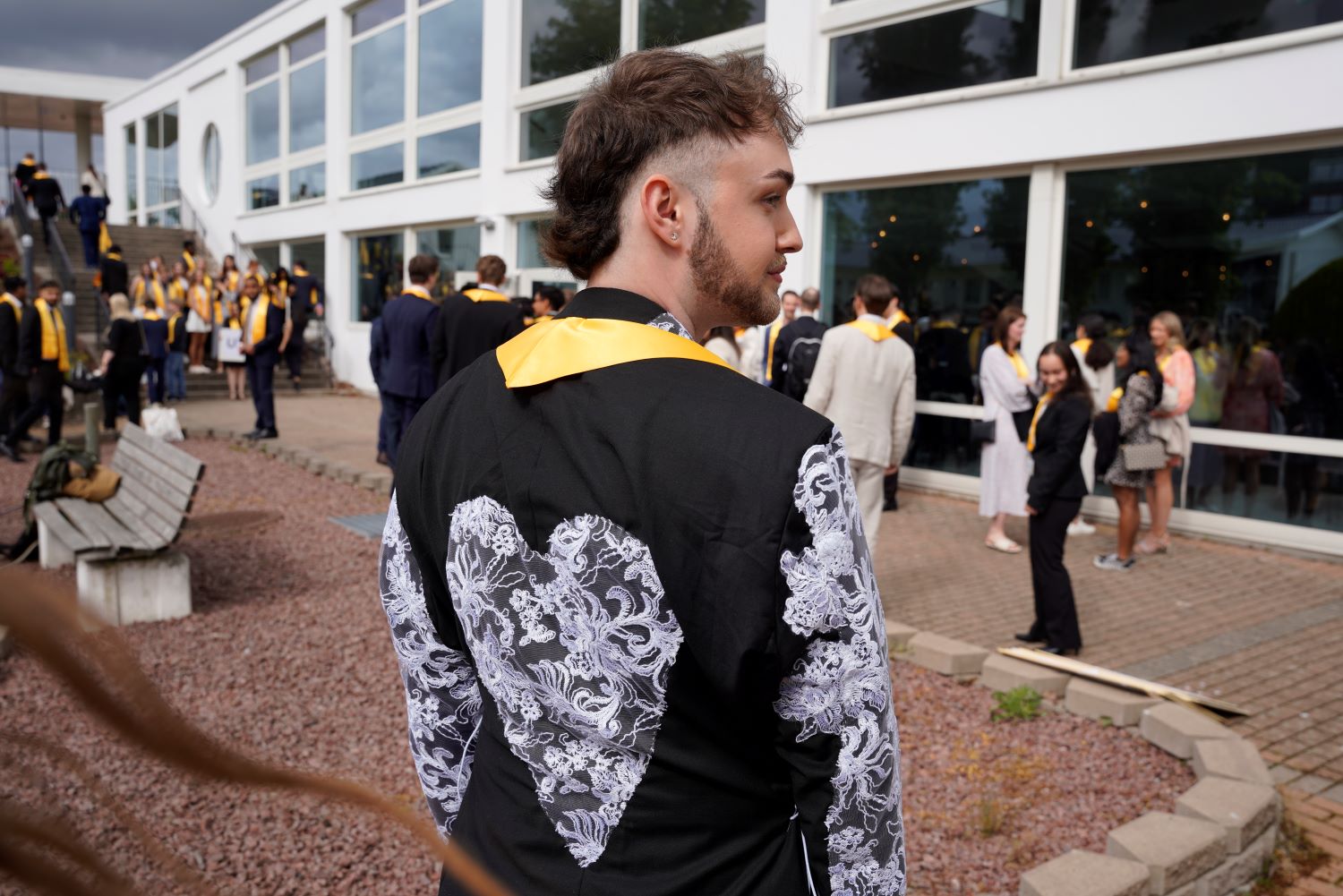 Studenterna tågade program för program upp på scenen i Hammarskjöldsalen på Jönköping Konsert & Kongress där de fick ta emot applåder och jubel från släkt och vänner. Sven Emilsson från Stockholm som har läst grafisk design och webbutveckling på JTH tyckte att examensfirandet på Elmia var kul och stämningsfullt. Han beskriver sin utbildning med ord som superbra och kreativ och understryker att han har trivts utmärkt i Jönköping.