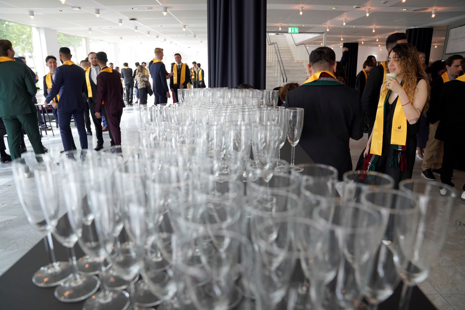 Ingrid Wadskog, vd för JTH, kände stolthet och glädje när hon blickade ut över alla JTH-studenter i Hammarskjöldsalen, iklädda sina gula JTH-sjalar.