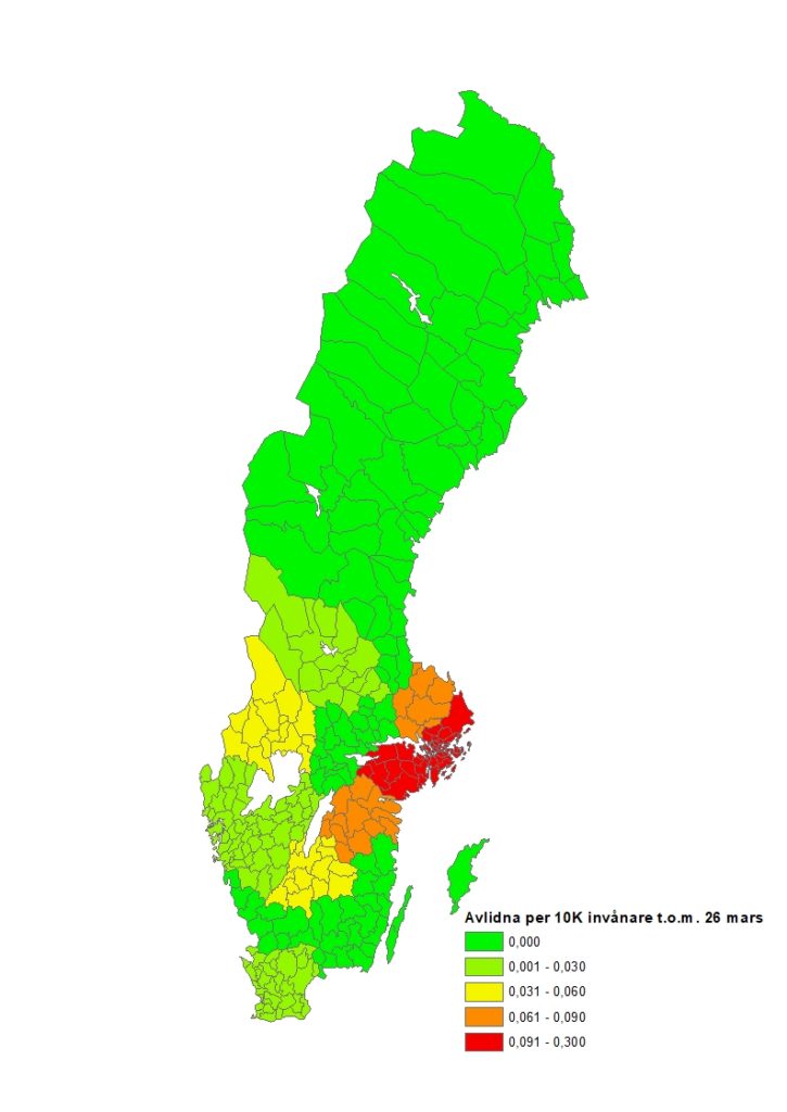 För varje dag som går så uppdateras dödstalen relaterade till COVID-19, inte bara från länder runt om i världen utan även från våra svenska regioner. Stockholm står för de högsta siffrorna, vilket delvis säkert kan förklaras av att det bor många individer i Stockholm. För att därför få en uppfattning om läget – givet antalet invånare i regionen – så har jag sedan den 26 mars försökt att uppdatera läget.